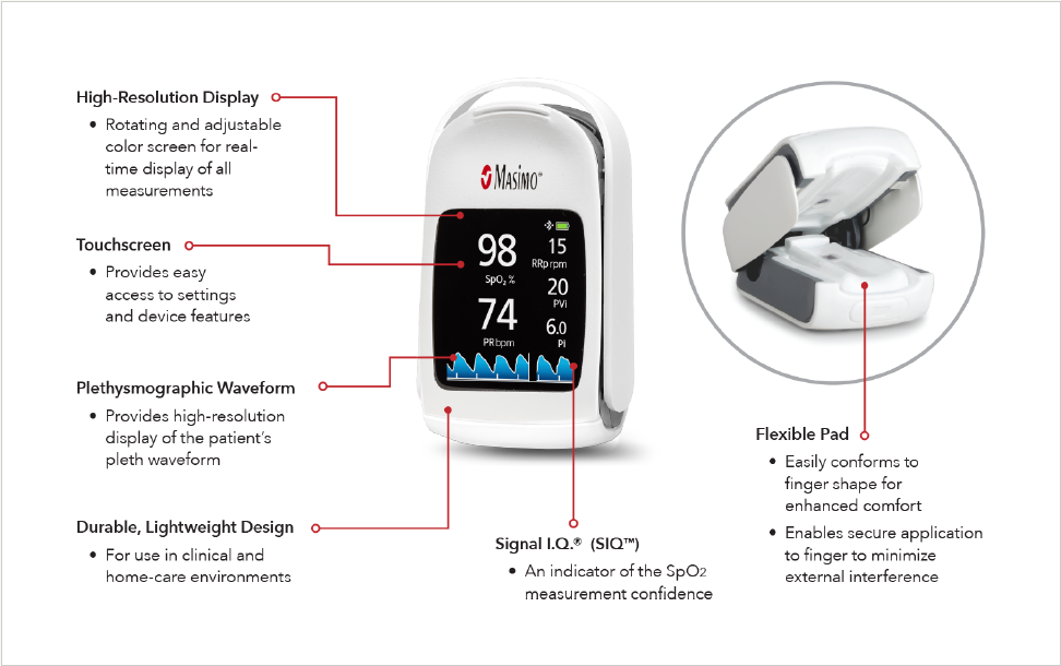 *Masimo SET® Measure-through Motion technology includes SpO2 and PR.
